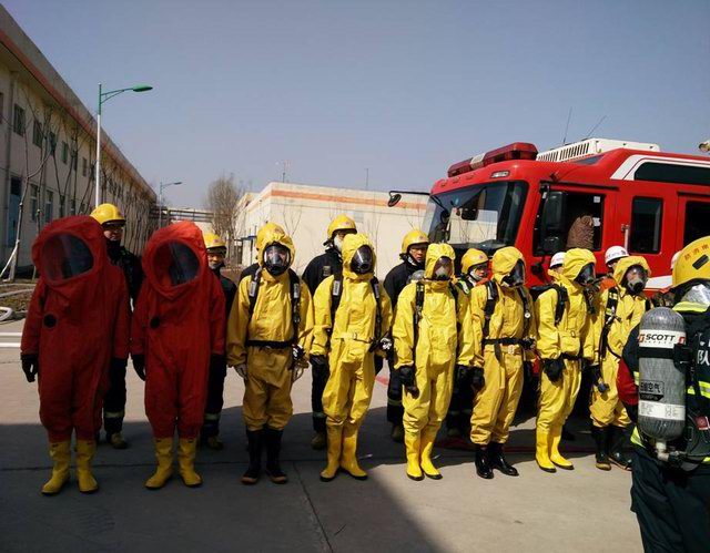 洛陽市消防支隊(duì)王榮范參謀長、西工區(qū)消防大隊(duì)劉學(xué)康大隊(duì)長及洛陽正大總裁辦喬光斌總經(jīng)理、食品事業(yè)部杜光輝副總經(jīng)理一行在演練前到達(dá)演練場地進(jìn)行安排部署,成立了消防演練現(xiàn)場指揮部,由洛陽市消防支隊(duì)王榮范參謀長任指揮長。演練假設(shè)正大食品有限公司制冷機(jī)房因設(shè)備發(fā)生故障,液氨罐發(fā)生泄漏,1名操作人員受困,現(xiàn)場人員立即向公司領(lǐng)導(dǎo)匯報(bào)并撥打119尋求支援。119指揮中心在接到報(bào)警后,由洛陽市消防支隊(duì)協(xié)調(diào),迅速調(diào)集澗西消防大隊(duì)下屬谷水中隊(duì),西工區(qū)消防大隊(duì)下屬車站中隊(duì)、紅山中隊(duì)迅速趕赴現(xiàn)場,與此同時(shí)正大食品有限公司迅速啟動單位應(yīng)急預(yù)案,組織員工疏散。十五分鐘后,紅山消防中隊(duì)6臺消防車、2臺救護(hù)車到達(dá)現(xiàn)場,消防戰(zhàn)士著防化服立即進(jìn)入現(xiàn)場,對氨中毒人員進(jìn)行搶救,對氨泄漏部位進(jìn)行應(yīng)急處置。二十分鐘后谷水中隊(duì)、車站中隊(duì)6臺消防車達(dá)到現(xiàn)場支援, 50余名消防員展開救援戰(zhàn)斗,用消防水槍噴水中和泄漏的氨氣,降低空氣中氨的濃度。經(jīng)過近一個(gè)小時(shí)的搶維修,氨泄漏得到控制,演練指揮中心宣布本次演練***結(jié)束。