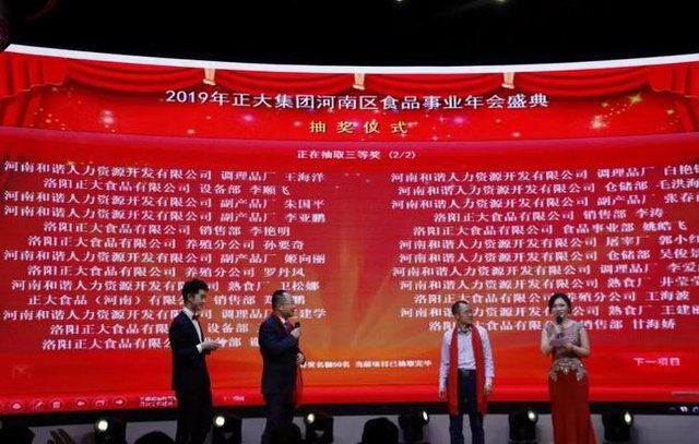 2019年1月21日,“龍頭騰起攬全月,鴻鵠展翅傲中原”——正大集團河南區(qū)食品事業(yè)2019新春年會在洛陽東華大酒樓盛大召開。正大集團農(nóng)牧食品企業(yè)(中國)副董事長王鴻章、正大集團河南區(qū)食品事業(yè)***總裁王學(xué)斌、正大集團河南區(qū)產(chǎn)業(yè)化總裁宋小兵及河南區(qū)食品事業(yè)各公司部門主管、員工代表300余人齊聚一堂,共享盛典。年會特邀河南東方正大有限公司洛陽飼料廠董事長茹懷智、中方副總經(jīng)理黃天發(fā)及河南和諧人力資源開發(fā)有限公司董事、總經(jīng)理王縣委、副總經(jīng)理張麗云參加。