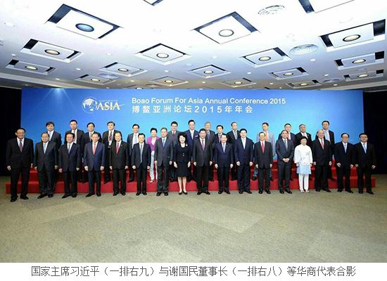 3月26-29日,博鰲亞洲論壇2015年年會(huì)在海南省博鰲舉行,本屆年會(huì)主題為“亞洲新未來(lái):邁向命運(yùn)共同體”。3月28日,國(guó)家主席習(xí)近平出席了年會(huì)開幕式,發(fā)表了題為《邁向命運(yùn)共同體 開創(chuàng)亞洲新未來(lái)》的主旨演講,并與正大集團(tuán)謝國(guó)民董事長(zhǎng)等出席博鰲亞洲論壇2015年年會(huì)的華商代表合影留念。