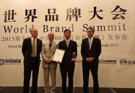 6月26日,由世界品牌實(shí)驗(yàn)室、世界經(jīng)理人雜志等機(jī)構(gòu)主辦的世界品牌大會(huì)暨2013年第十屆《中國(guó)500***具價(jià)值品牌》發(fā)布會(huì)在北京東方君悅大酒店召開。會(huì)議發(fā)布了2013第十屆《中國(guó)500***具價(jià)值品牌》排行榜,正大集團(tuán)以208.86億元的品牌價(jià)值位居第88位。美國(guó)耶魯大學(xué)管理學(xué)院萊維·多爾教授(右一)、法國(guó)歐洲工商管理學(xué)院瓊·克勞德·拉里齊教授(左二)以及英國(guó)牛津大學(xué)商學(xué)院斯蒂芬·沃格教授(左一)為正大集團(tuán)頒獎(jiǎng)。董事長(zhǎng)辦公室(北京)楊海浩總裁(右二)代表集團(tuán)接受獎(jiǎng)杯及證書。